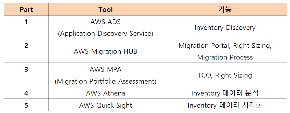 아래 Tool에 대해서 사용 방법 및 활용 가이드를 제공하도록 하겠습니다. 아래 Tool들은 AWS 중심으로 되어있지만, Assessment 단계에서는 다른 CSP에 동일하게 적용하여 사용 가능 합니다.