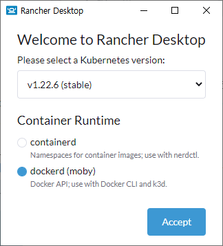- https://rancherdesktop.io/ 에서 환경별(Windows, Mac(Intel,ARM), Linux) 설치 파일을 받아서 실행, 설치하면 끝입니다.